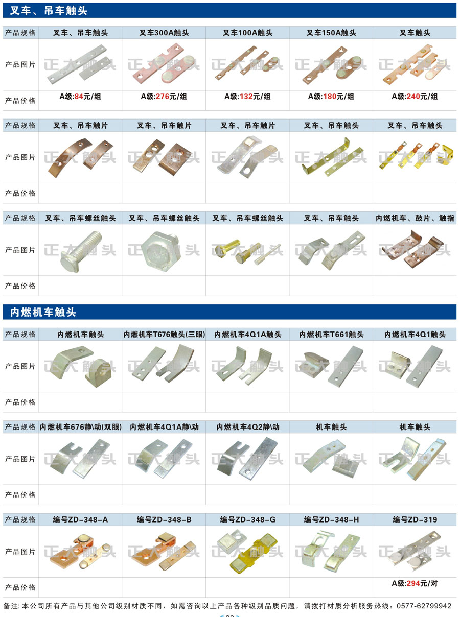 叉车、吊车触头、内燃机车触头