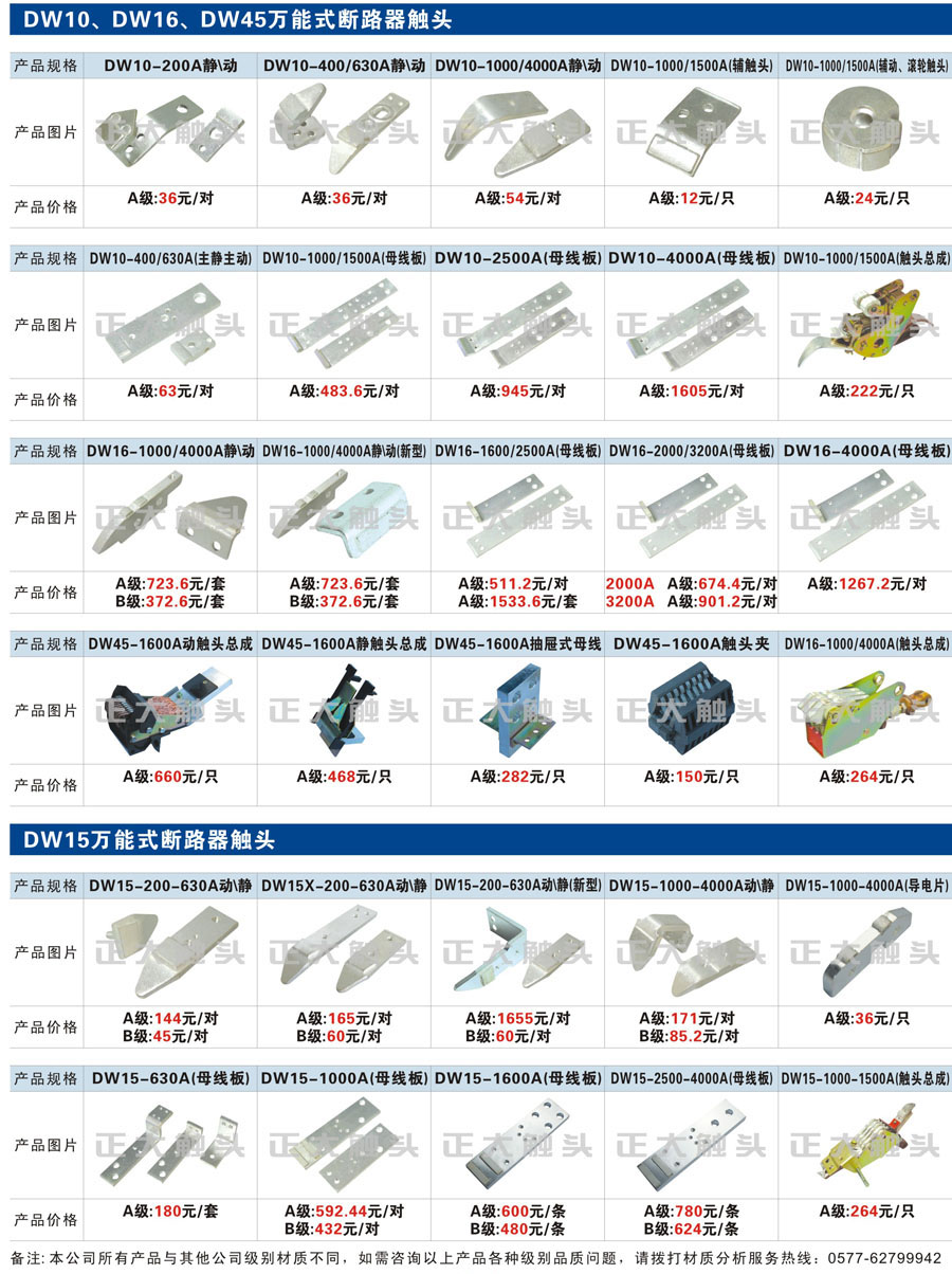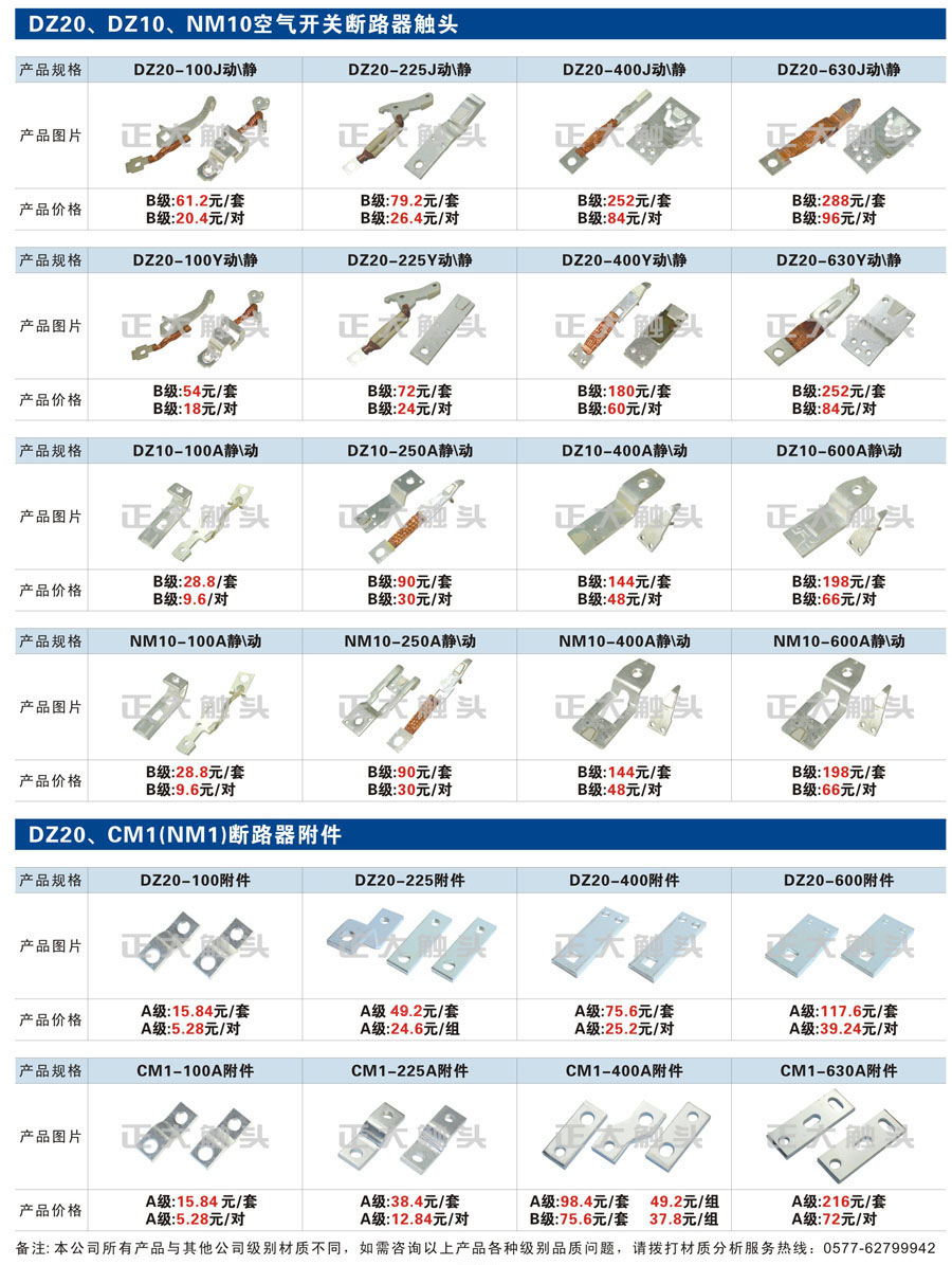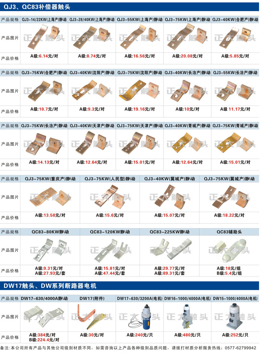 触头元件作为电器开关核心元件,主要用于接触器,继电器,断路器,凸轮控制器,补偿器,行程开关,脚踏开关,辅助开关等。suncitygroup太阳集团电气现生产CJT1,CJX1,CJX2,CJX4,CJX5,CJX8(B系列)CJ20,CJ40,CJ12,CJ15,CJ24,CJ24Y,CJ0,CDC10,CJ91,CT91,CJ913,CJ914,CJ3,CJ8Z交流接触器触头,CZ0,CZ1,CZ3,CZ17,CZ18,CG5直流接触器触头,QJ3,QC83补偿器触头,凸轮控制器,主令触头,KT10,KT12,KT14,KTJ1,KTJ5,KTJ6,KTJ15(QT5),LK1,LK17,LK18,THQ1,TQKT等;断路器触头DW10,DW16,DW15,DW17,DW45,DZ10,DZ20,内燃机触头,矿用触头,叉车,吊车触头,JYN1,JYN2,ZN28,SN10,VS1,梅花触头等。进口ABB系列AF,EH,EK,富士SC系列,日立H系列,施耐德LC1系列,西门子3TF,3TB系列,LG公司(LS产电)GMC系列,三菱机电SN系列。与国内正泰,德力西,天正,人民等,国外ABB,施耐德,西门子,富士,三菱等厂家电气配套。